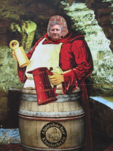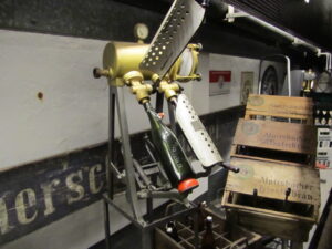 The museum was opened in 1995, the 900th anniversary of the monastery. The first part of the tour showed us brewing in the 1890’s. The quality of beer depends on its malt, even as the barley grows in the field. This beer uses hops grown mainly in the Hallertau region around Ingolstadt, near Spalt, near Nurnberg. Alpirsbach claims to have water of exceptional quality and clarity – a soft spring water of absolute purity. We saw manual filling apparatus dating back to 1905, the origin of the red balls/pom poms on ladies bonnets, copper kettles, and a refrigerating machine built by Carl Linde in 1900. After the tour ended, we were treated to tastes of their beer and a film – in German. When the movie ended, the marketing/pr guy gave a short speech. Then he sat down with us and conversed with us for an hour in perfect American English.