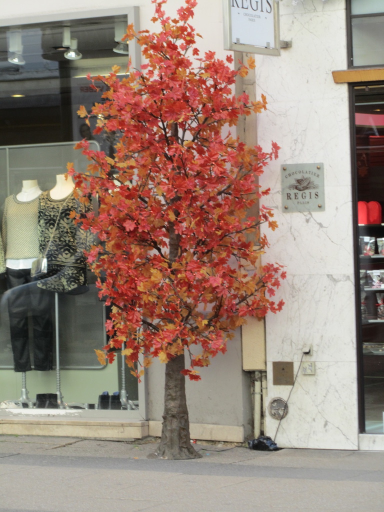 These trees are very interesting we found them all over the 16th completely artificial with lights and leaves in colors ranging from white, to blue, to pink, to this autumn hue.