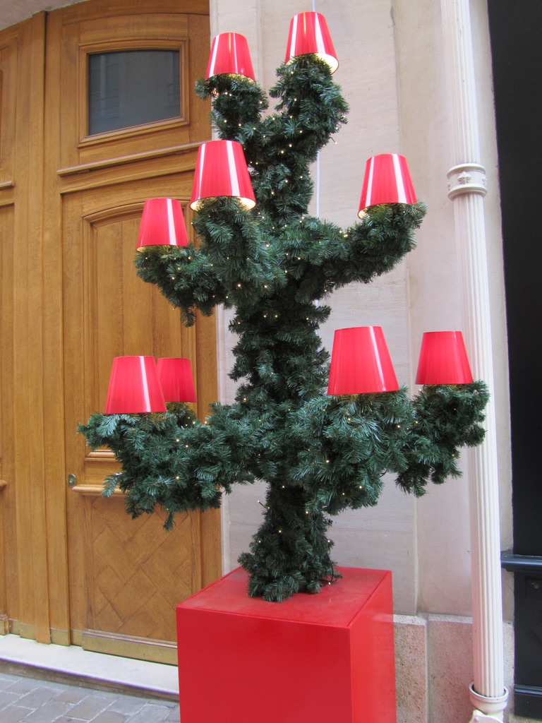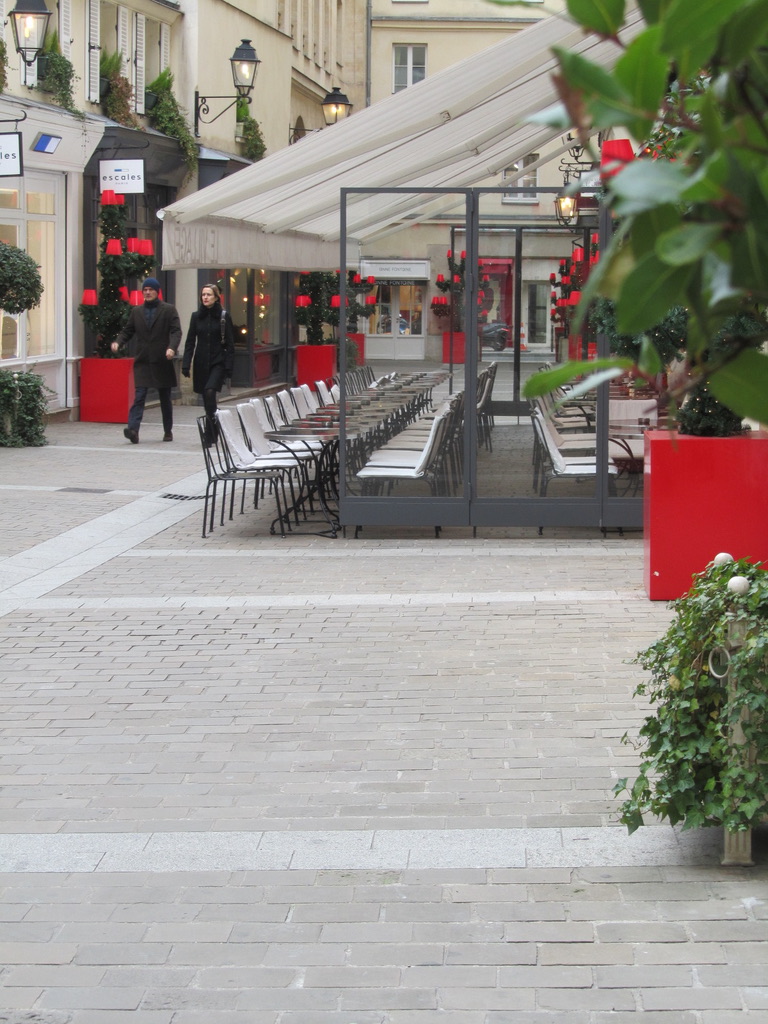 We cut over to an alleyway (wish Richmond’s alleys looked like this) called Le Village Royal, an uncovered passageway with an enclave of cafes and boutiques surrounded by immaculately maintained buildings. The passageway was still decorated for Christmas with lighted pre-formed trees covered with light shades! Very cute idea!