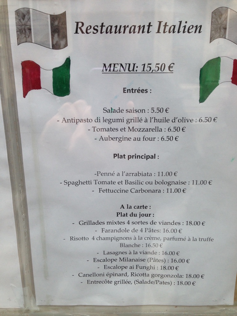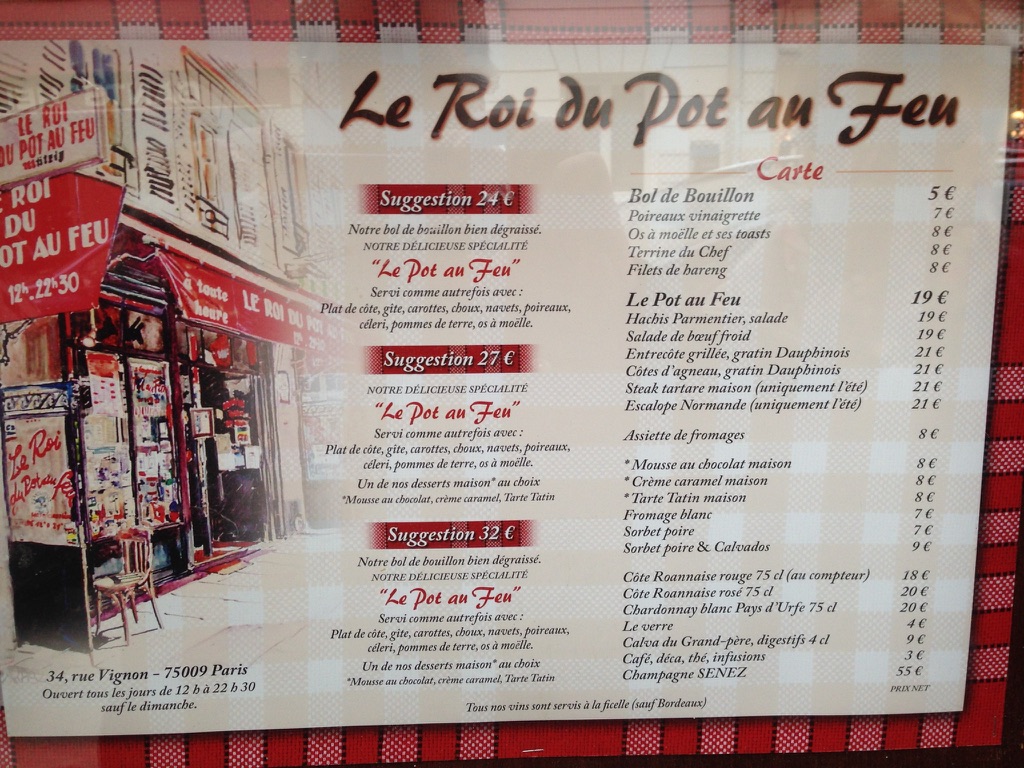 Down rue Vignon we found La Maison du Meil with varieties of honey including thyme, lavender, and eucalyptus – to name a few. Â During our walk, we found two new potential restaurants to try: an Italian one with fresh, house made pasta and a traditional French restaurant specializing in pot au feu. Stay tuned to see if we try them and report back.