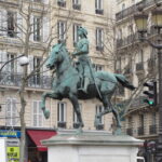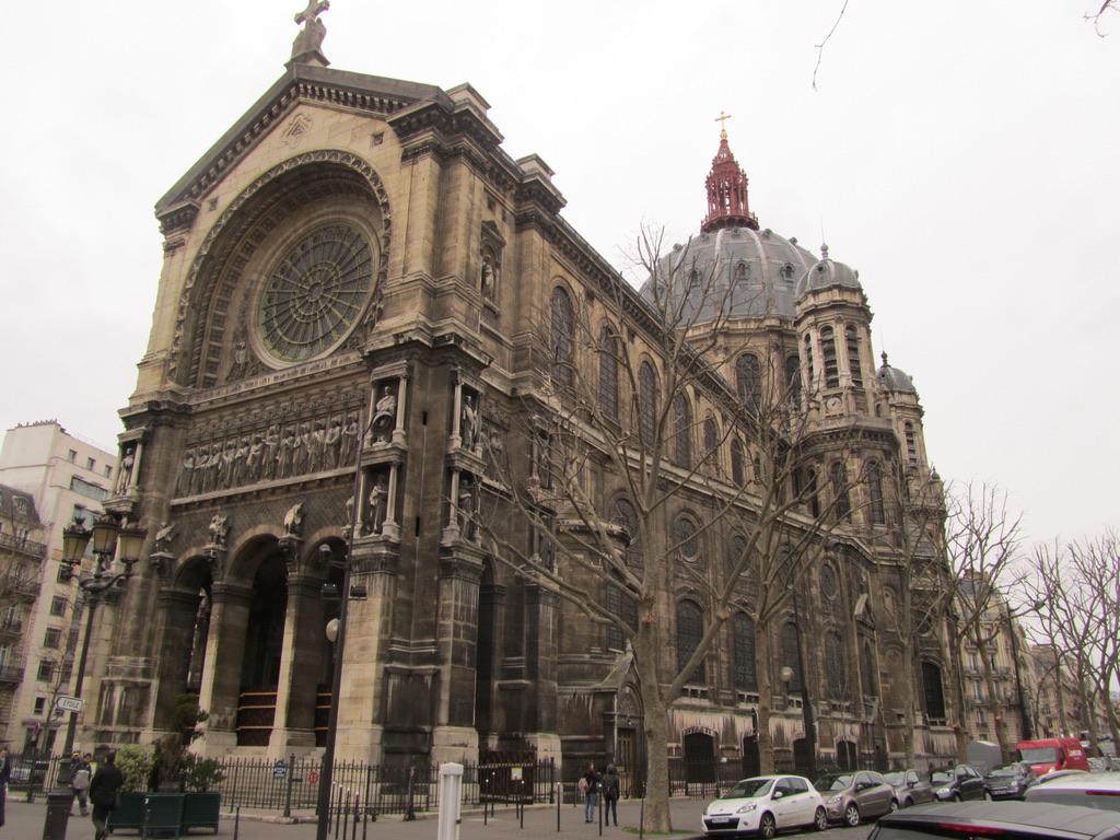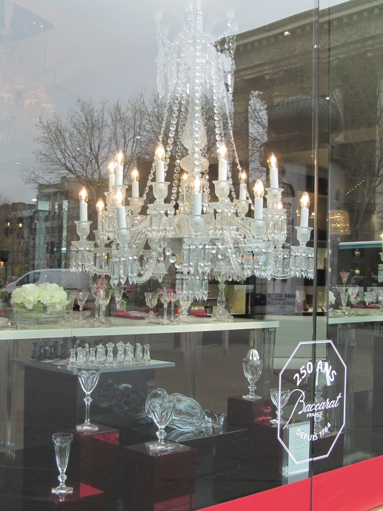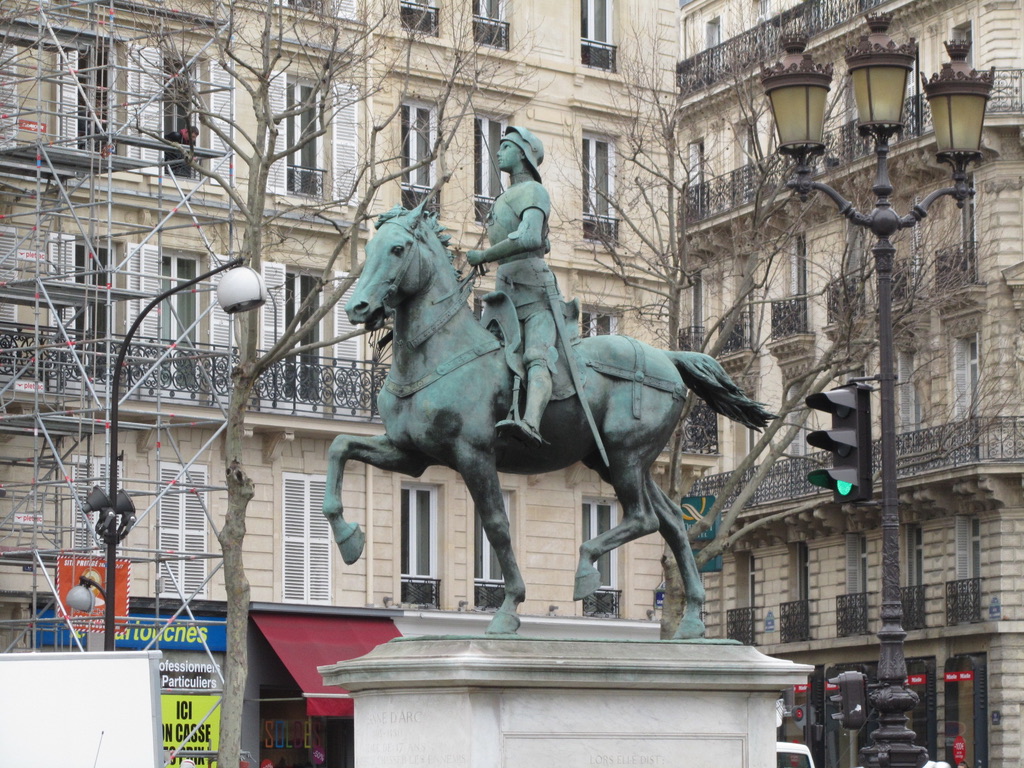 We left empty handed and headed up boulevard Malesherbes, past the wonderful chandeliers in the window at Baccarat, toward St Augustin, a Second Empire church. The vista up this street is very Parisian with opulent houses lining the boulevard. Â Just in front of the church is a statue of Jeanne d’Arc by Paul Dubois.