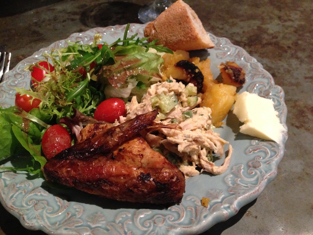 We arrived at about 1610 to wine and chess and then a dinner of roast chicken, salad, chicken with Taziki sauce, bread and of course the market potatoes. A great Sunday dinner with friends and their family.