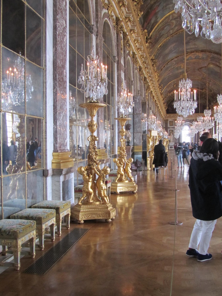 We explored the estate, visiting the Palace, with it’s Hall of Mirrors, King’s Chamber, and the Queen’s bedroom, the gardens, with their fountains, statues and giant reflecting pool and the Petit