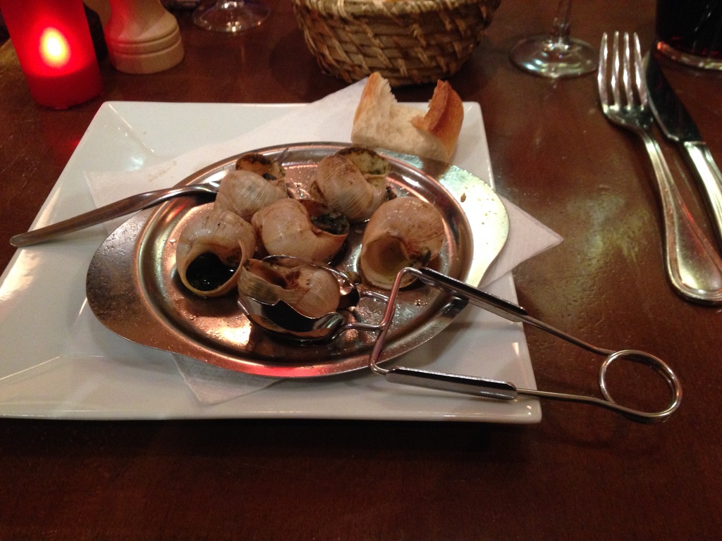 We decided to stay in the neighborhood tonight. We have been walking by the Cafe Le Chalet du XVI for almost a month and decided to give it a try. I order snails (Escargot)